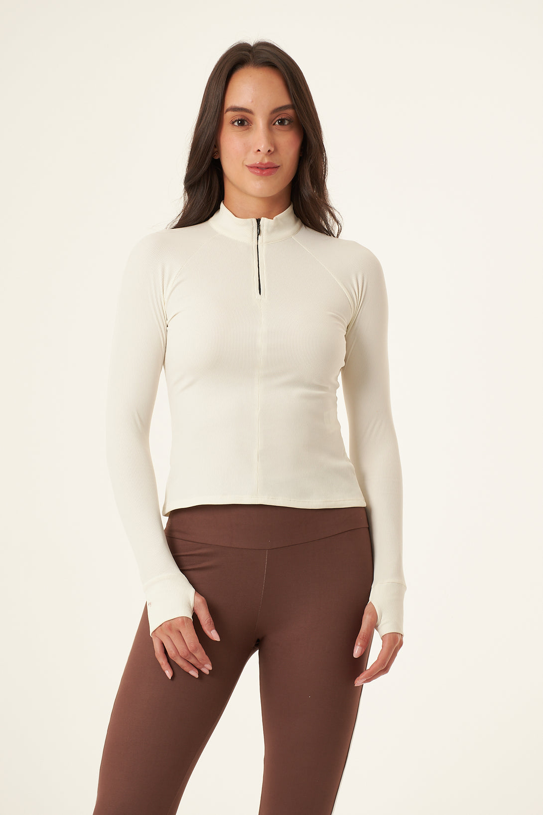 Buzo deportivo de silueta ajustada con cuello alto y cierre frontal que brinda un look moderno y funcional. Incluye aberturas en las mangas para pasar el dedo, ofreciendo mayor practicidad y comodidad durante la actividad física. Su tela elástica asegura libertad de movimiento y un ajuste perfecto al cuerpo. Ideal para entrenamientos, running o uso diario con estilo deportivo.