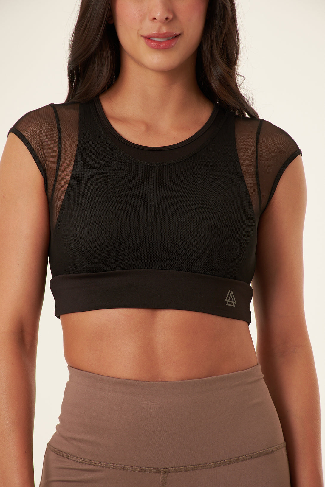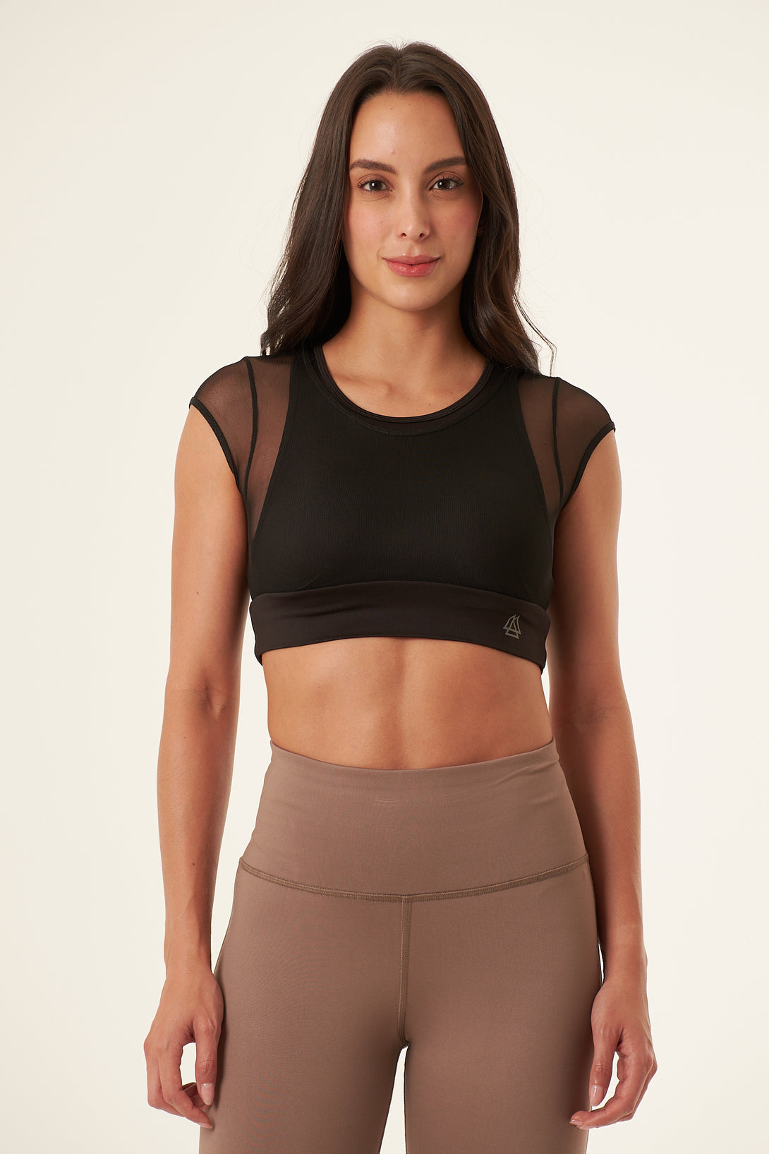 Camiseta deportiva para mujer con diseño moderno y funcional, confeccionada en tela de alto rendimiento que ofrece ajuste perfecto, control de humedad, secado rápido y elasticidad. Tela exterior en malla ligera que aporta frescura, silueta corta que realza el estilo y fajón con detalle reflectivo para un toque distintivo.