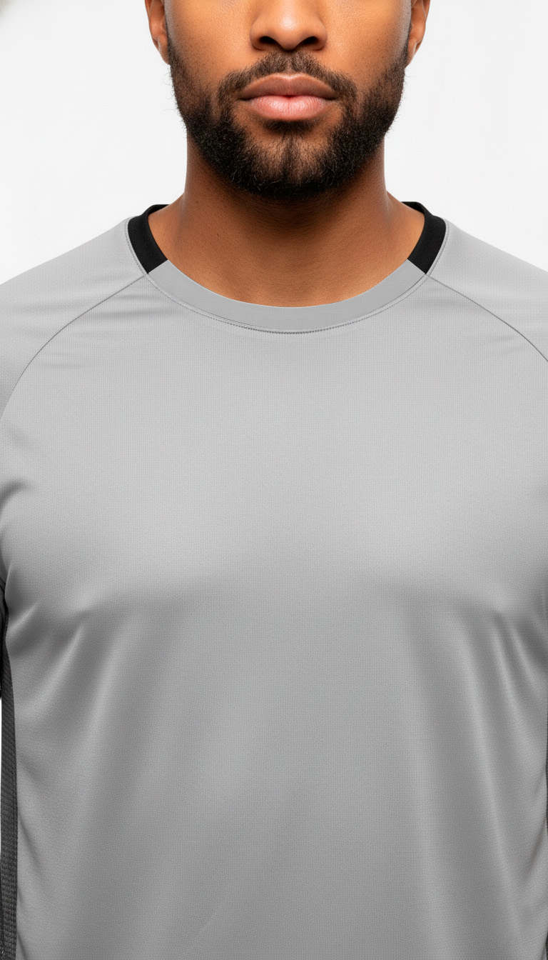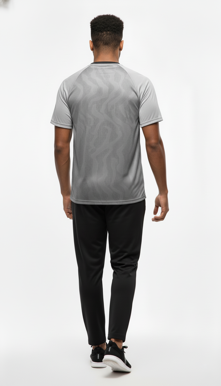 Camiseta manga corta tipo ranglan con cuello redondo. Su diseño único incluye la espalda en malla sublimada, ligeramente adelantada hacia el frente, lo que le da un toque moderno y deportivo. Confeccionada en 95% poliéster y 5% elastano, garantiza flexibilidad y comodidad durante el movimiento, ideal para cualquier actividad física.