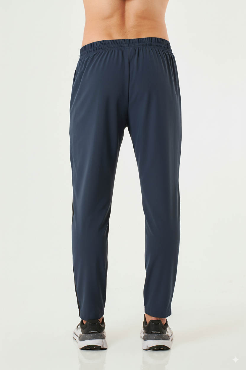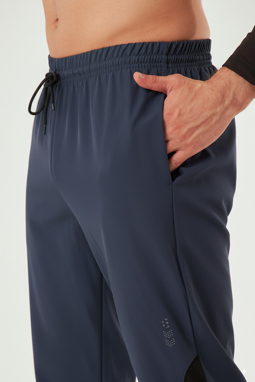 Jogger deportivo azul para hombre en poliéster resistente y ligero. Cuenta con pretina elástica y cordón ajustable para un ajuste cómodo, bota recta, bloques en malla que facilitan la transpiración y bolsillos laterales funcionales para mayor practicidad.